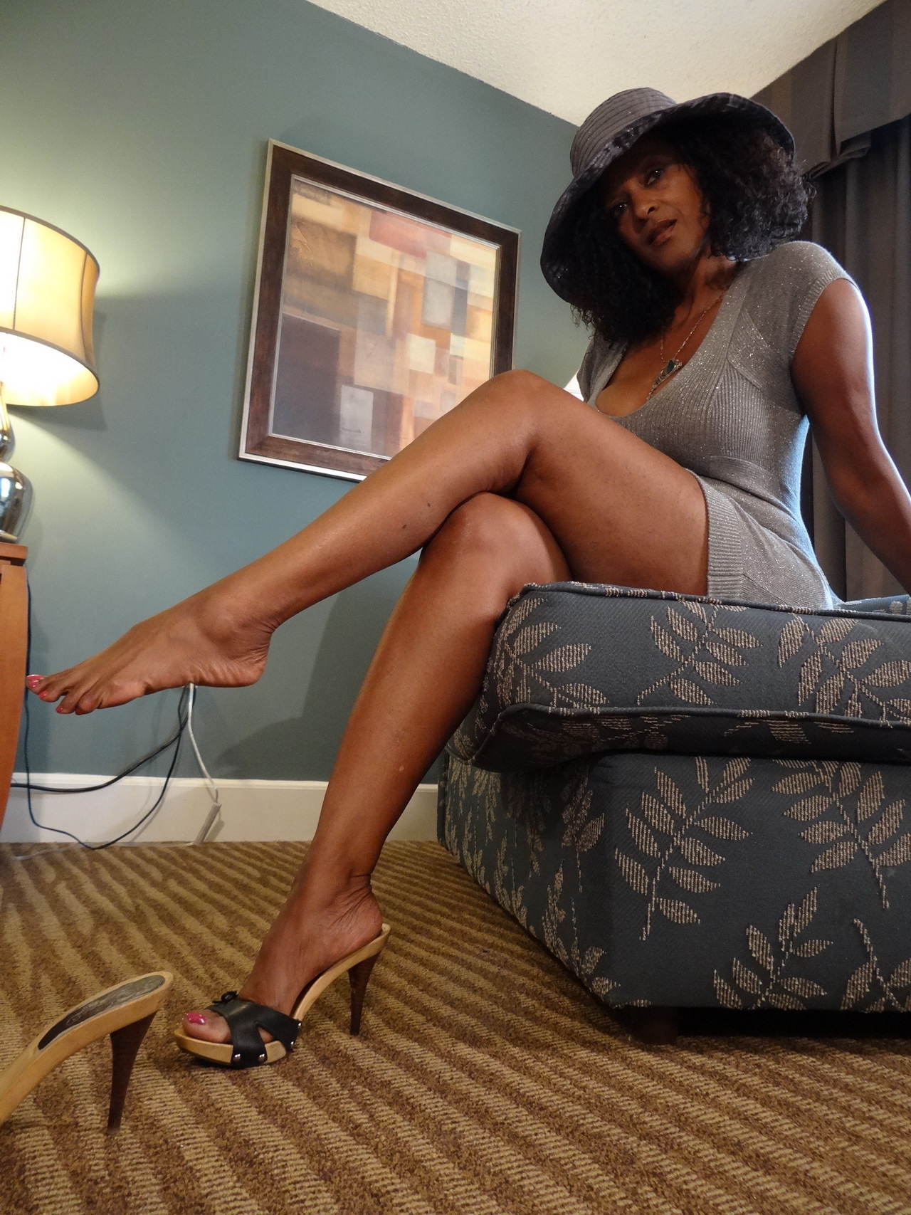 Description: 30 pics - Foot model Tee has all of her attention it seems with something going on outside. She pays you no mind while dipping in and out of her heels. |
